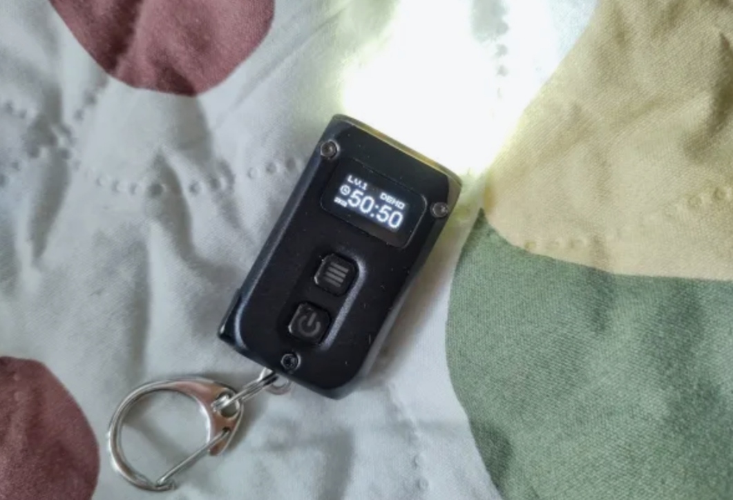 Маленький и стильный фонарик наключник. Имеет дисплей для отображения состояния фонарика и уровня заряда батареи. Интенсивность яркости очень просто регулируется.